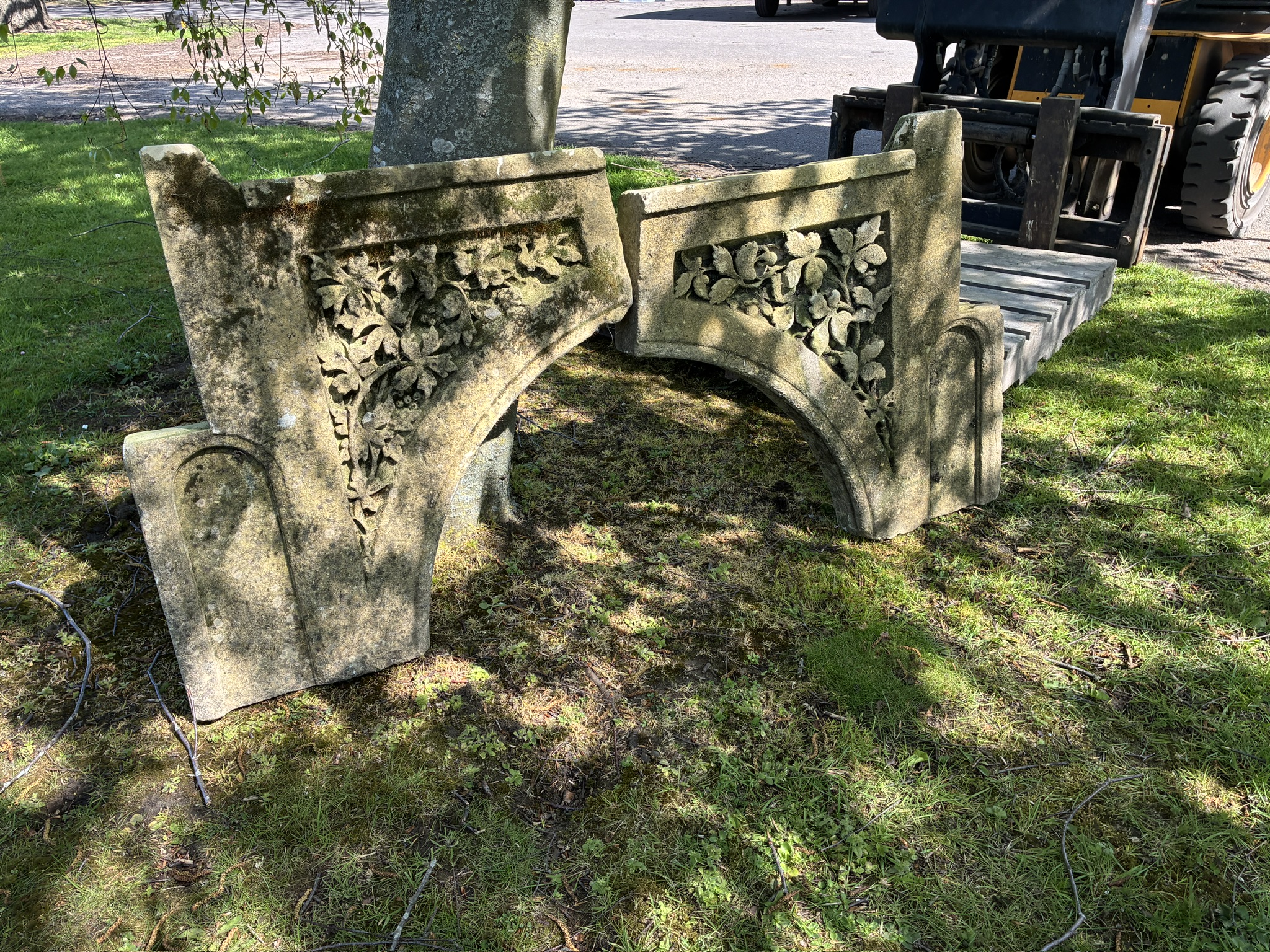 Lovely pair of C19th carved stone sections. Originally likely to have been over a door way creating an archway with a keystone. Unfortunately the keystone is no longer around but that said I do have a stunning lion head keystone from the same period that would marry quite well with these.