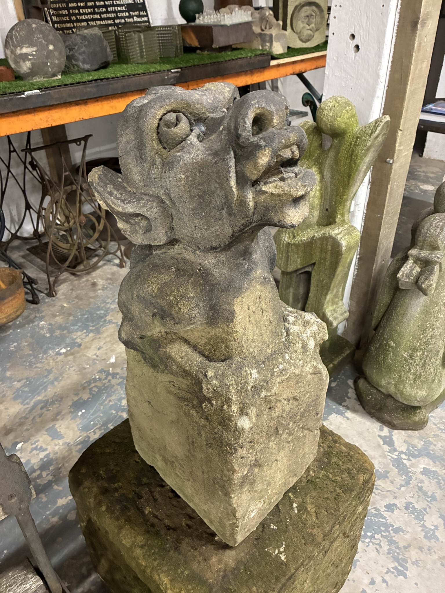 Stunning example of a late medieval hand carved solid stone grotesque. This guy is so ugly he’s beautiful. Gargoyles and grotesques were placed on buildings to ward off evil spirits and I’m pretty sure this guy did his job. Exquisite example of stone carving.
