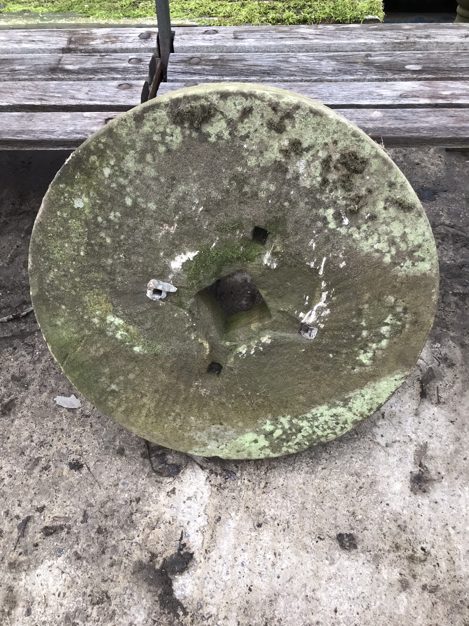 C19th Millstone 19” diameter 6” thick. Nicely weathered