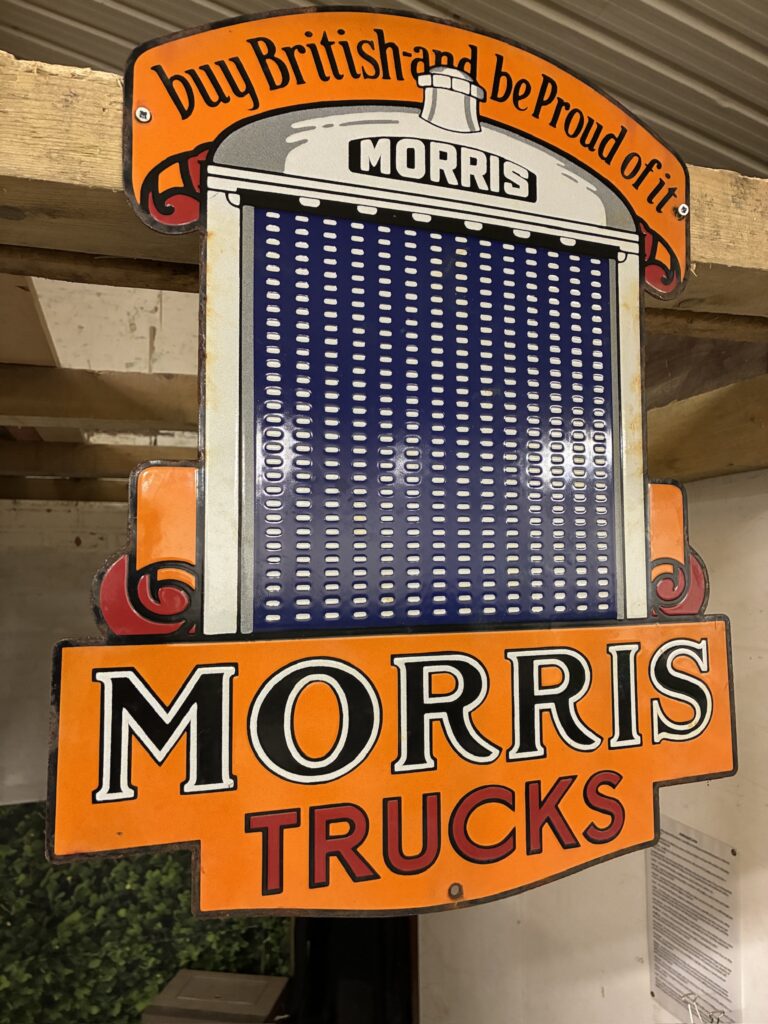 Great later enamel advertising sign for Morris Trucks. Good size and vivid colours. Hard to find.
