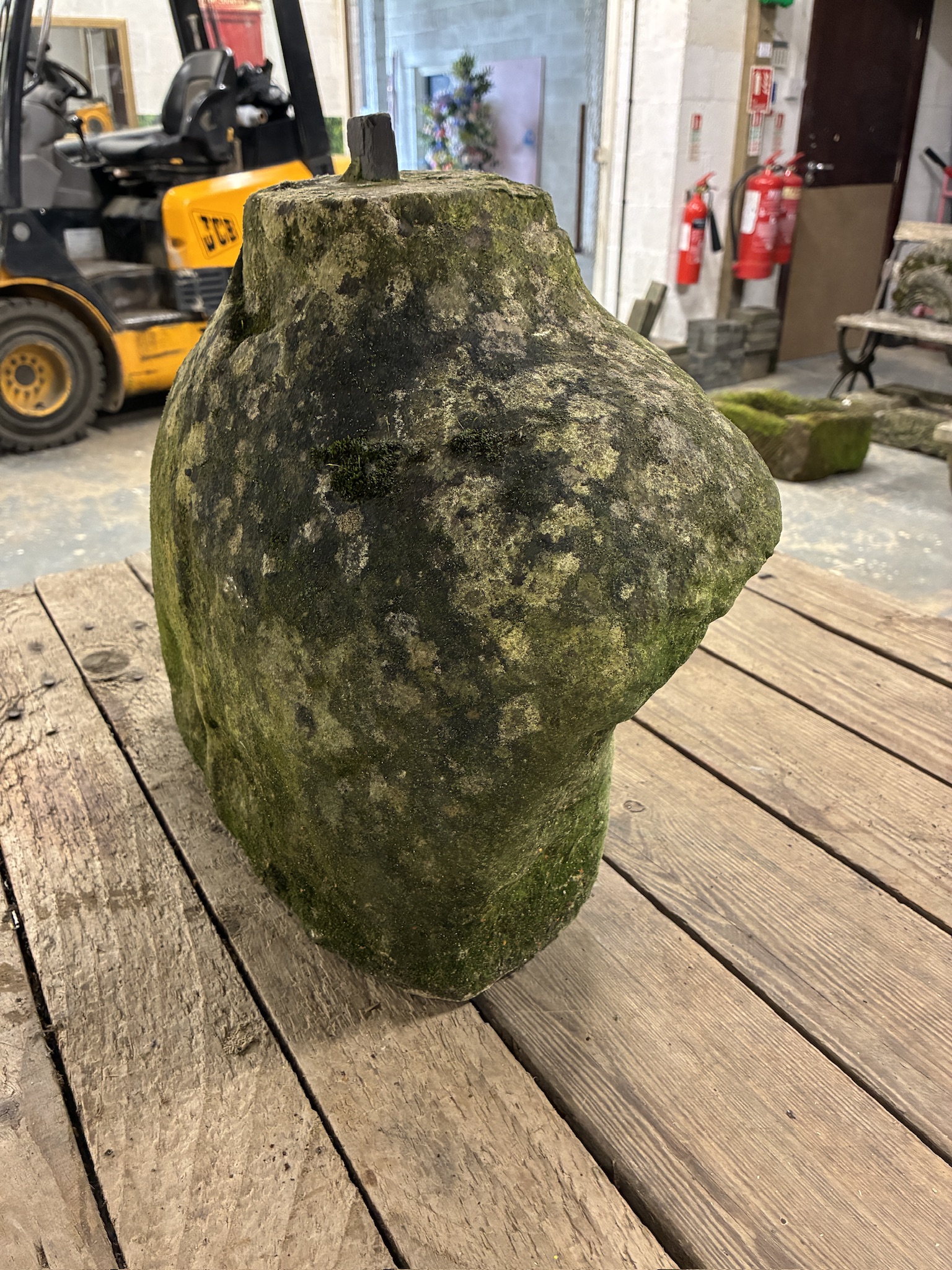 Quirky headless reclaimed stone upper torso and shoulders bust.