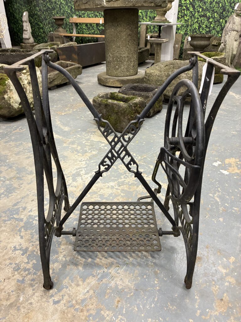Very nice wrought iron sewing machine base. These make great bases for tables for either indoor or outdoor us. Most are Singer bases which is the most common but this is a much rarer base manufactured by the White Sewing Machine Co. These are much more decorative