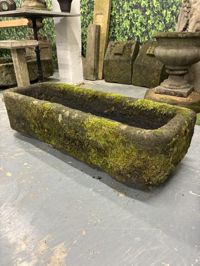 Lovely genuine stone trough reclaimed from a property in the Yorkshire Wolds. Ideal planter size to sit on top of a wall although it does hold water so can be used in a water feature. Fantastic weathered patina with rounded front corners giving it that extra bit of detail.